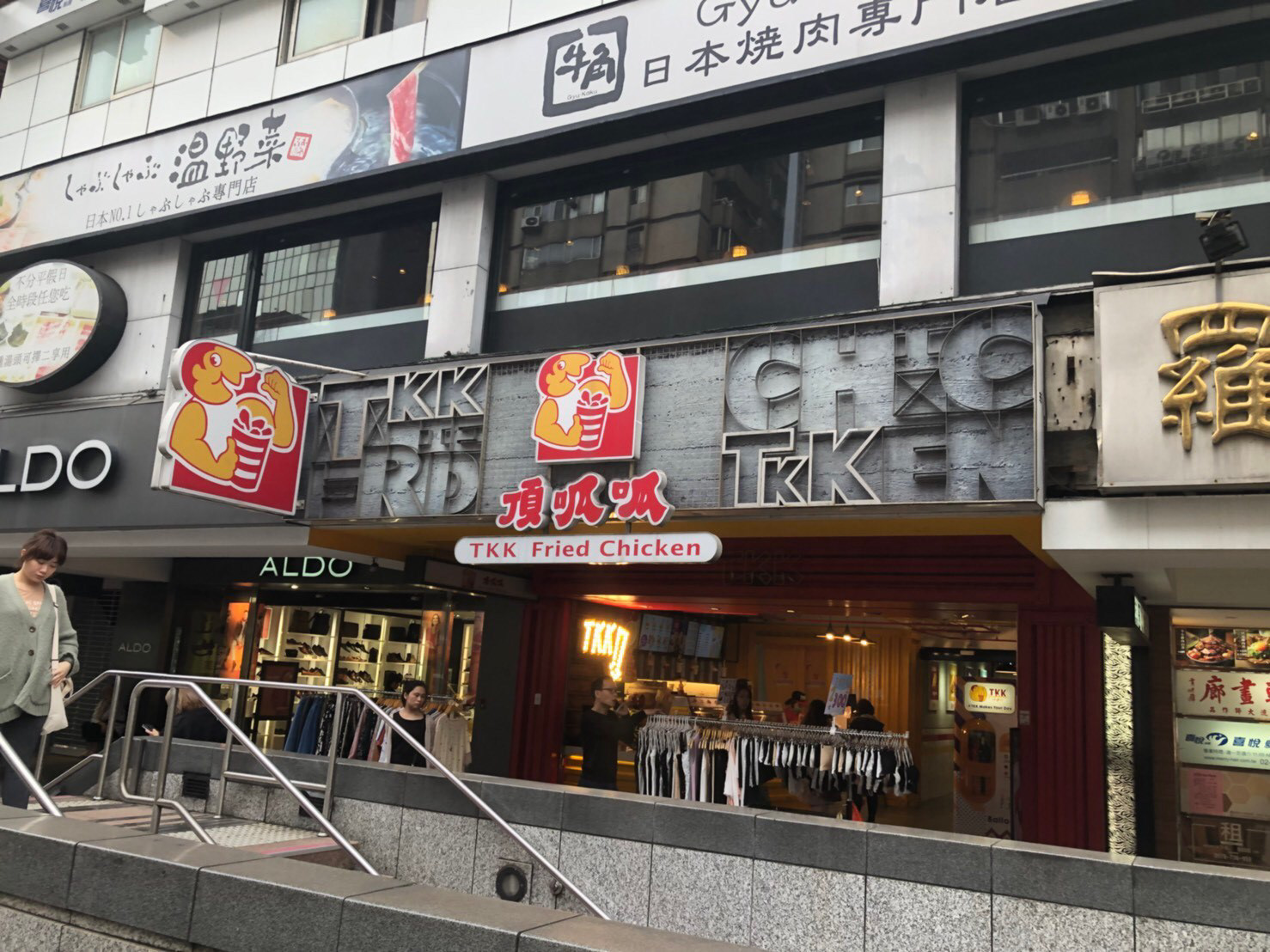 Store front signage design for a TKK Fried Chicken x Kung Fu Tea joint restaurant located in Taipei, Taiwan.